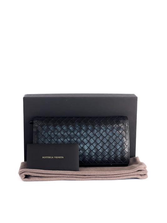 Bottega Veneta Black Intrecciato Leather Continental Wallet