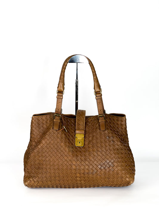 Bottega Veneta Tan Intrecciato Leather Roma Tote