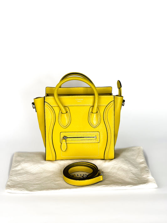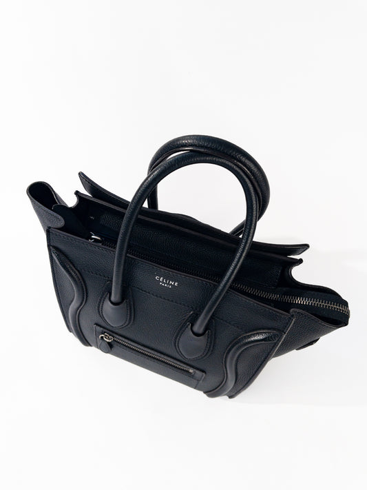 Celine Nano Luggage Bag In Drummed Calfskin Leather