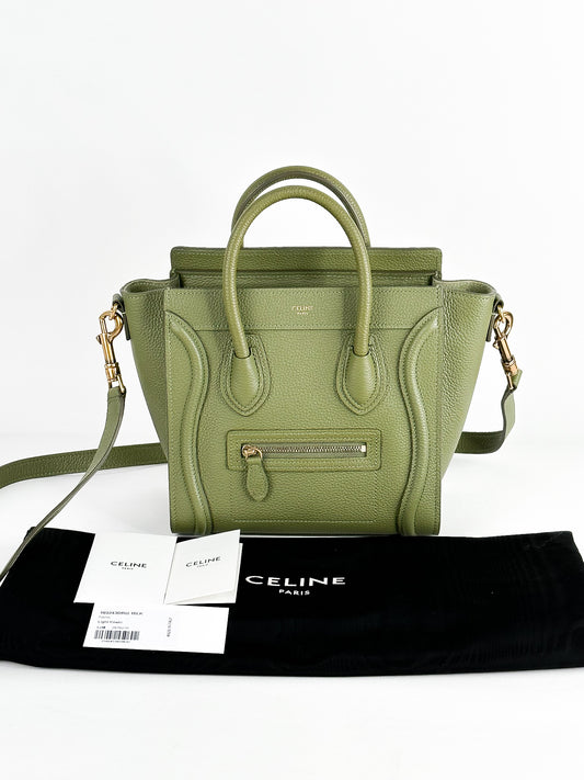 Celine Nano Luggage in Drummed Calfskin Light Khaki