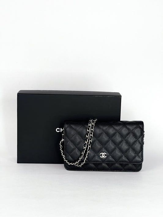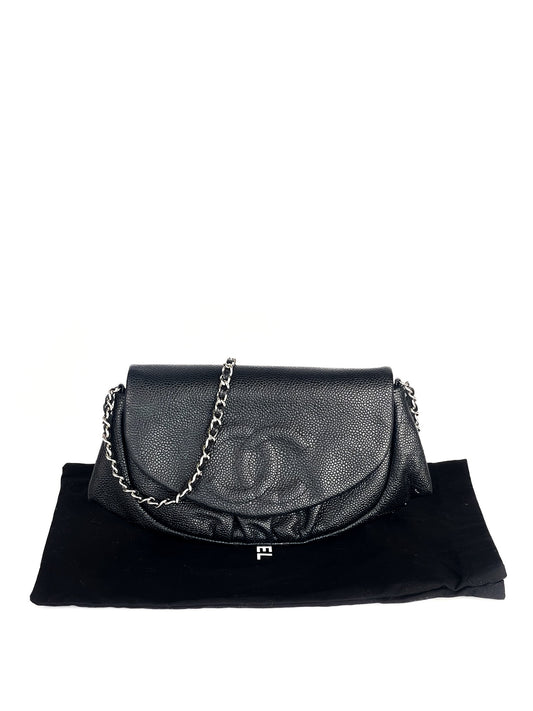 Chanel Caviar Half Moon Wallet On Chain WOC Black