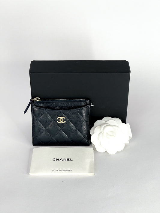 Chanel Caviar Quilted CC Zip Card Holder Black