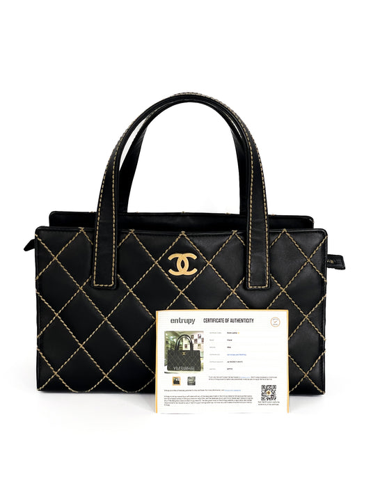 Chanel Black Vintage Handbag in Wild Stitch Leather with Brushed Gold Hardware