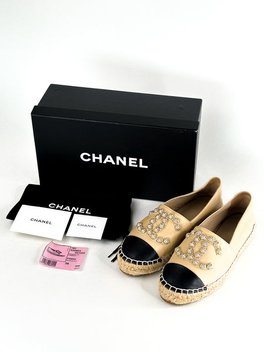 Chanel Beige/Black Camellia CC Espadrille Flats Size 36