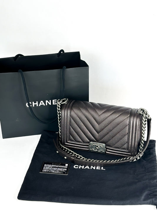 Chanel Caviar Chevron Quilted Medium Boy Flap