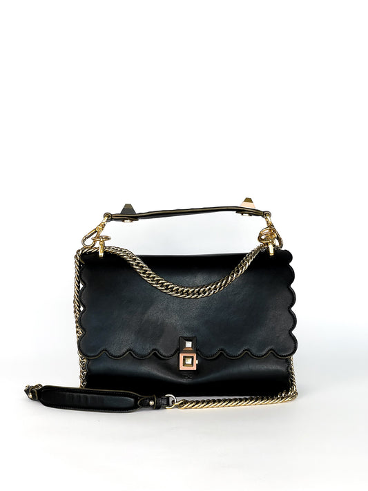 Fendi Vitello Liberty Scalloped Studded Kan I Shoulder Bag Black