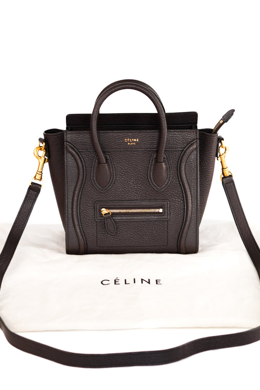 Celine Drummed Calfskin Nano Luggage Brown