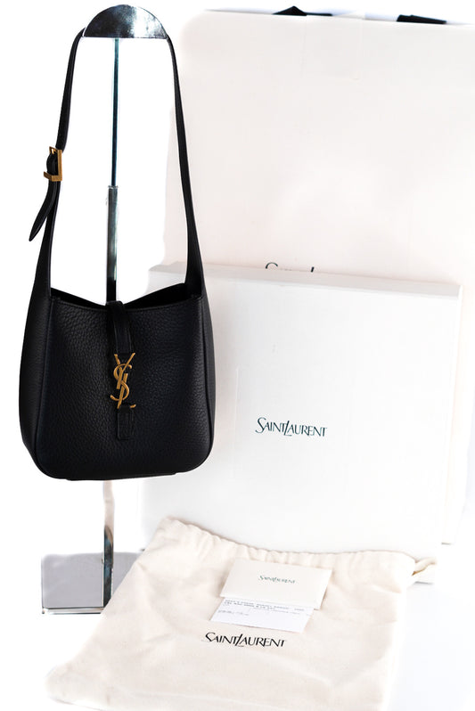 Saint Laurent Grained Calfskin Baby Le 5 A 7 Supple Hobo Black
