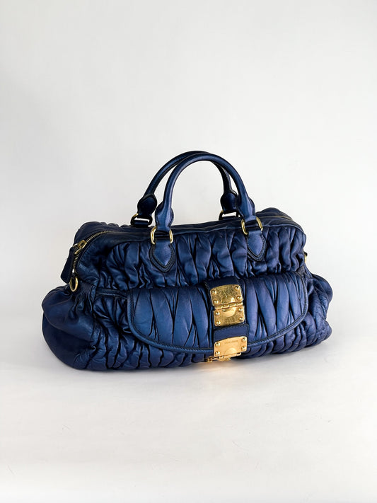 Miu Miu Blue Matelasse Quilted Leather Satchel