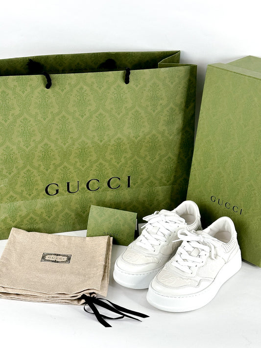 Gucci White Leather GG Embossed Perforated Leather Trainers Sneakers Size 35