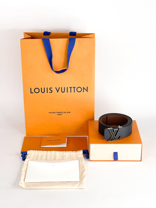 Louis Vuitton Reversible Navy Blue/Brown LV Tilt Buckle Belt Size 100/40