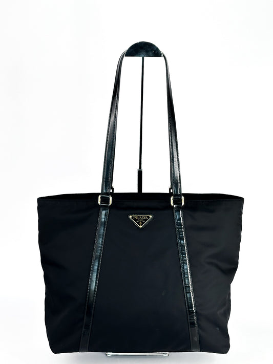 Prada Glace Calfskin Embossed Logo Tote Black