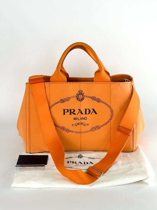 Prada Canapa Canvas Satchel Orange