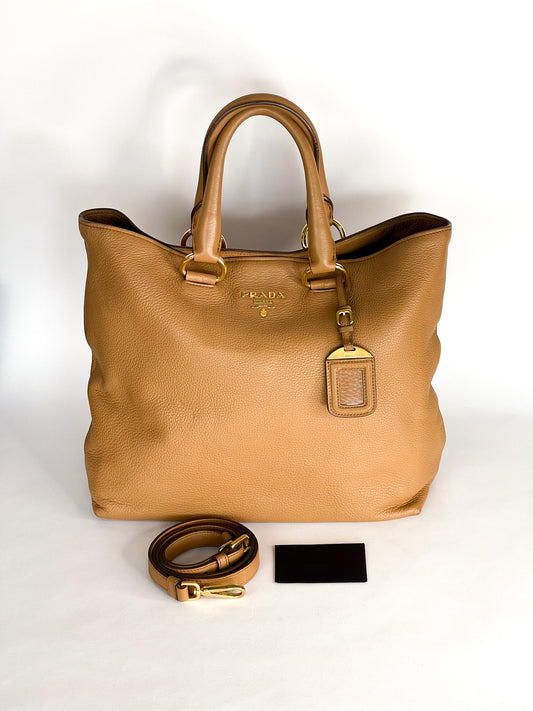 Prada Vitello Daino Leather Two Way Tote Bag