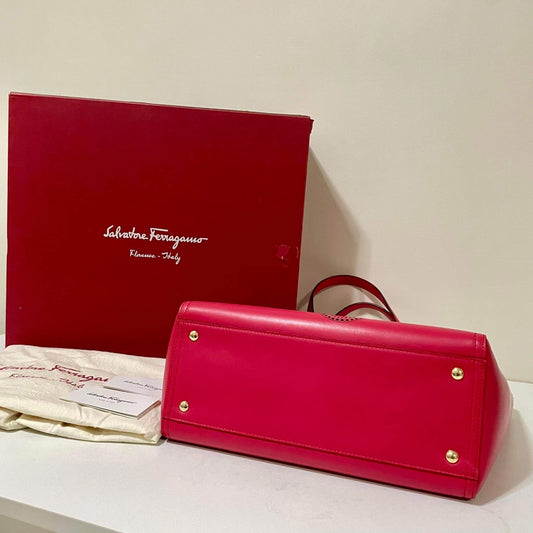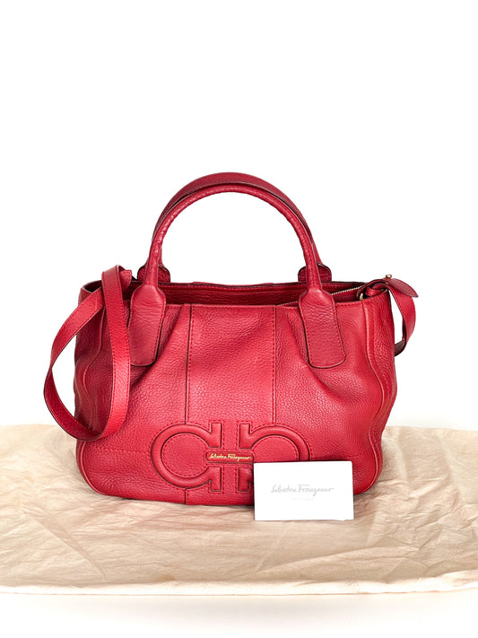 Salvatore Ferragamo Izzie Gancini Detail Grained Leather Top Handle Bag Red