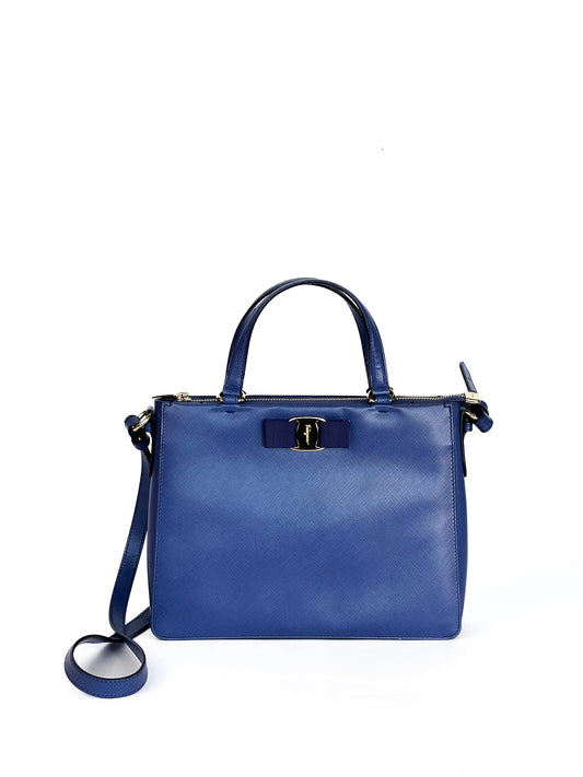 Salvatore Ferragamo Printed Calfskin Tracy Vara Tote New Iris
