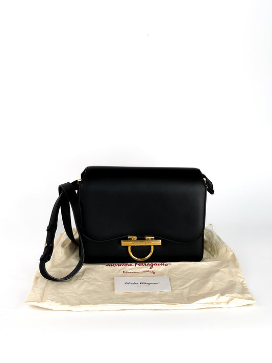 Salvatore Ferragamo Calfskin Joanne Crossbody Black