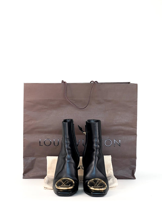 Louis Vuitton Black Leather Madeleine Block Heel Ankle Boots Size 36