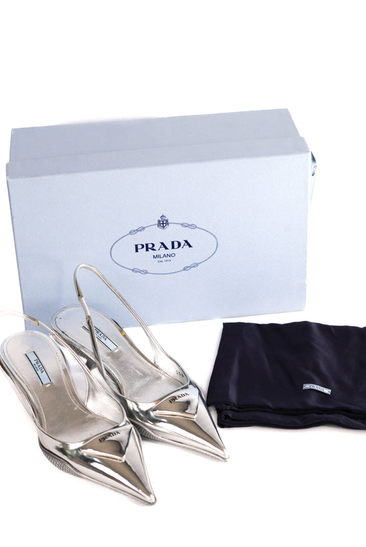 Prada Metallic Slingback Pumps Size 35.5