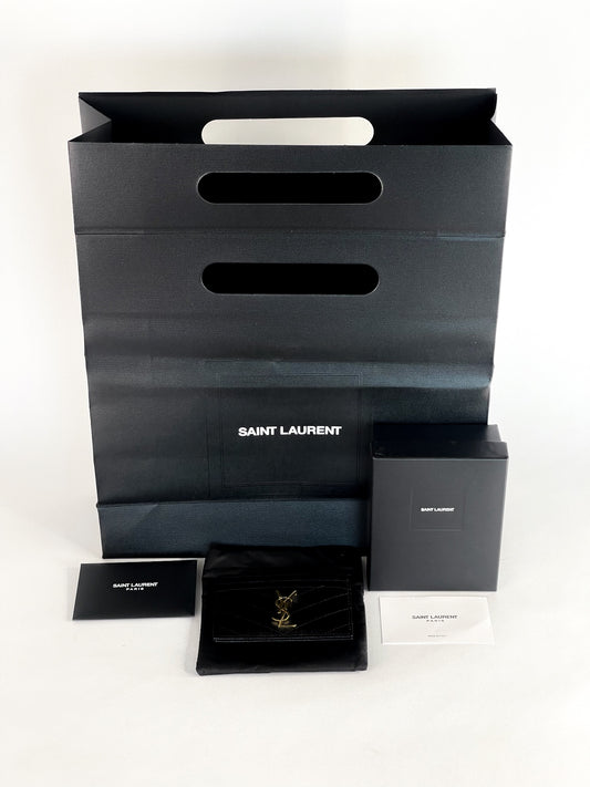 Saint Laurent Grain De Poudre Matelasse Chevron Monogram Card Holder